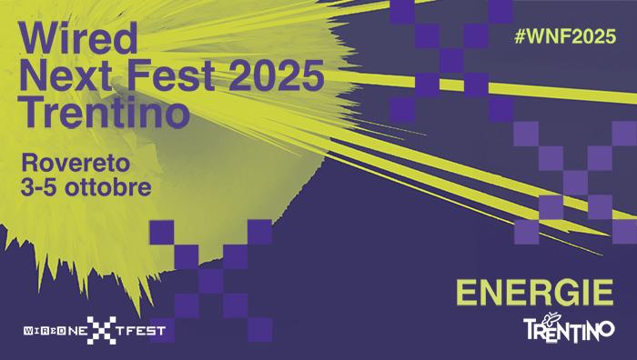 La terza edizione di Wired Next Fest Trentino si avvicina. Il più importante evento gratuito in Italia dedicato alla tecnologia e all’innovazione animerà le strade di Rovereto dal 3 al 5 ottobre con incontri, dibattiti, laboratori, momenti musicali e interviste ai protagonisti del mondo scientifico, culturale, politico ed economico italiano. Il tema di quest'anno è Energie: un invito ad agire e ripensare il nostro rapporto con il pianeta e la società, esplorando le forze umane, tecnologiche, ambientali che stanno trasformando il nostro tempo.
